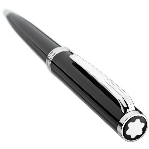 Le capuchon et le corps sont fabriqués en résine précieuse noire incrustée de l'emblème blanc Montblanc