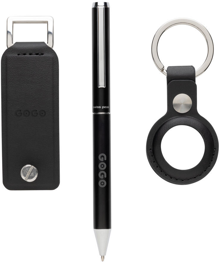 - Set contenant un organisateur de clés Swiss Peak Tula certifié RCS, le pratique Support AirTag et le stylo en aluminium recyclé