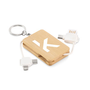 Câble multicharge porte-clés bambou personnalisable Bupow