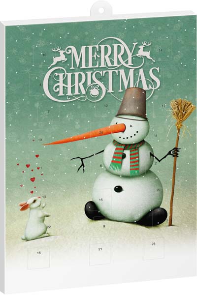 Les calendriers de l'avent contiennent des douceurs variées. Le chocolat est toujours omniprésent. Dans plusieurs de nos calendriers de l'avent publicitaires, le chocolat provient du commerce équitable. Il peut s'agir de chocolats identiques ou bien d'un assortiment de chocolats différents. Selon les goûts de vos plus proches collaborateurs, vous pourrez choisir différentes saveurs : du chocolat noir, du chocolat au lait, du chocolat marbré, du chocolat 42%, 68 %, 71% bio, 75% ou du chocolat Gianduja. Les formes peuvent aussi se multiplier : carrés, cubes, mais aussi des boules ou des billes de chocolats. Les carrés de chocolat évoquent Noël et sont moulés en relief ou en creux aux formes des décorations intemporelles de fin d'année : bottes, sapins, cadeaux, étoiles, lutins, Père Noël, couronnes,...