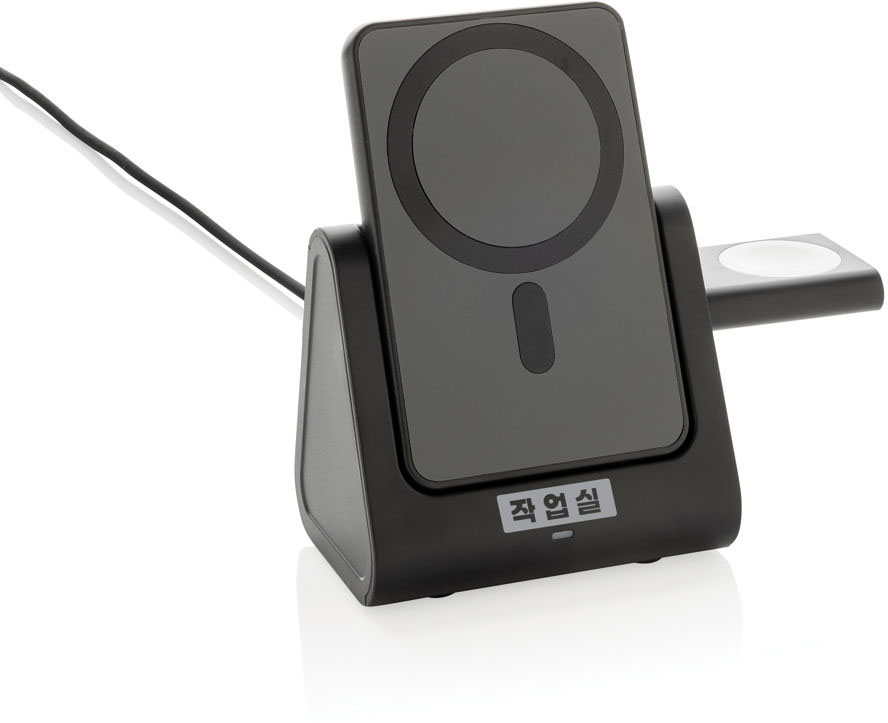 - Chargeur sans fil 3-en-1 avec socle de recharge fabriqué en ABS et PC recyclé RCS