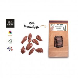 Ce sachet de confiserie, composé de pastilles en chocolat de la marque M&Ms, présente l’atout certain d’être 100% personnalisable de son conditionnement à ses bonbons eux-mêmes ! Ainsi, vous aurez tout d’abord à déterminer vos 3 couleurs de prédilection pour colorer ces confiseries, parmi une quinzaine de nuances disponibles. Vous pourrez y intégrer votre message promotionnel sur un maximum de 2 lignes et de 9 caractères pour chacune d’entre elles. Ce sachet personnalisé M&Ms est également 100 % personnalisable et sera idéal pour renforcer la visibilité de votre image de marque, tout particulièrement si vous êtes un parc d’attraction, un cinéma ou encore un hôtel. Le saviez-vous ? La célèbre marque de confiserie M&Ms va bientôt souffler sa 80ème bougie d’anniversaire. Ce produit est certifié IFS Food pour sa composition respectueuse des normes d’hygiène et de sécurité actuellement en vigueur.