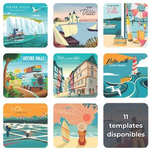 - Personnalisation : + de 11 templates disponibles parmi les illustrations et les paysages de France / vos propres photos à nous fournir (1 ou 2) / création sur-mesure réalisée par notre studio graphique