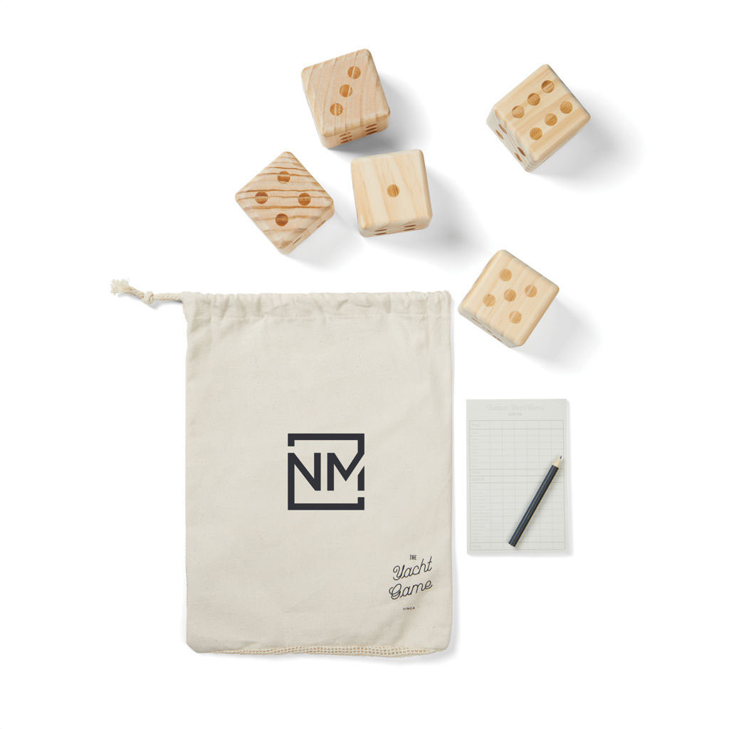 - 5 dés, mesurant 7x7x7 cm, un bloc-notes et un crayon sont inclus