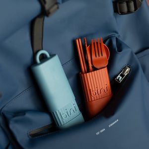 - Dans le kit Bini, il y a une fourchette qui pique vraiment, un couteau qui coupe parfaitement, des baguettes qui saisissent bien, une cuillère creuse pour de belles cuillerées (si quelqu’un a déjà compris le concept des cuillères plates, appelez-nous), dans un petit étui léger, nomade et ingénieux
