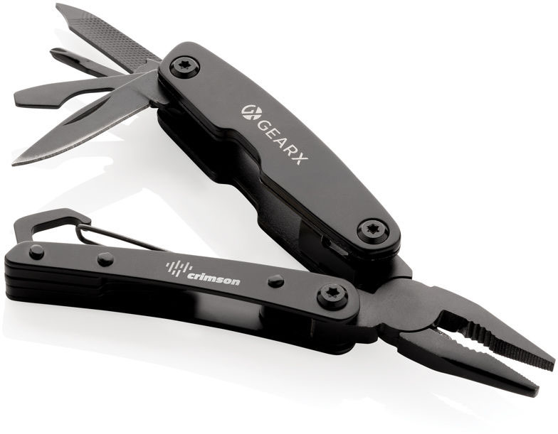 - Avec de multiples fonctions qui incluent : Pince longues, pince standard, pince coupante, couteau, décapsuleur, tournevis plat, tournevis Philips, lime, nettoyeur de lime et mousqueton