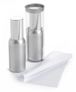- Le tube contient un spray antistatique 50 ml en aluminium recyclé pour nettoyer les lunettes et écrans (tablette, téléphone, PC) et une microfibre teintée dans la masse