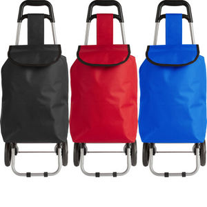 - Chariot de course en polyester 600D avec cadre en aluminium, fermeture par cordelette et poche arrière zippée.
